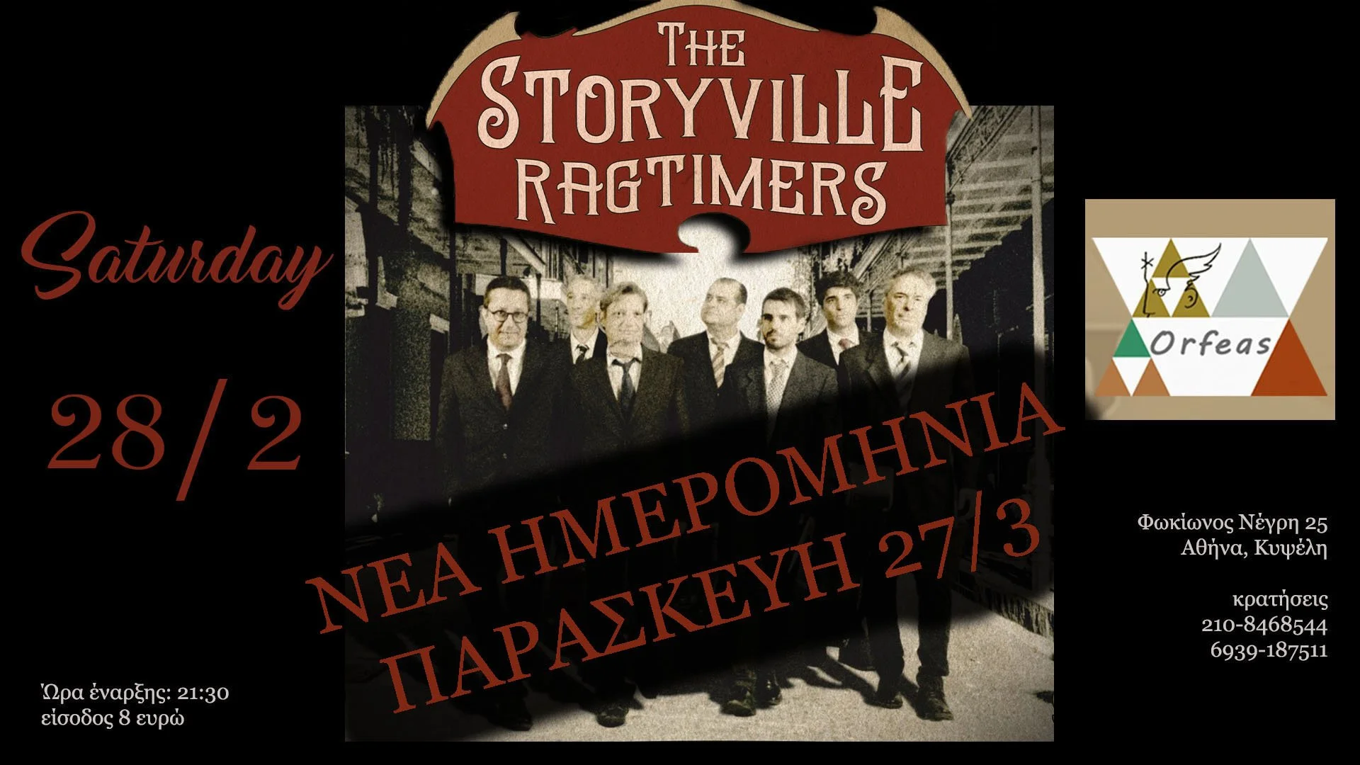 Λόγω της συμμετοχής του Πανελλήνιου Μουσικού Συλλόγου στην 24ωρη απεργία του Σαββάτου για το έγκλημα των Τεμπών η προγραμματισμένη μας εμφάνιση στον "Ορφέα" μεταφέρεται για την Παρασκευή 27 Μαρτίου.